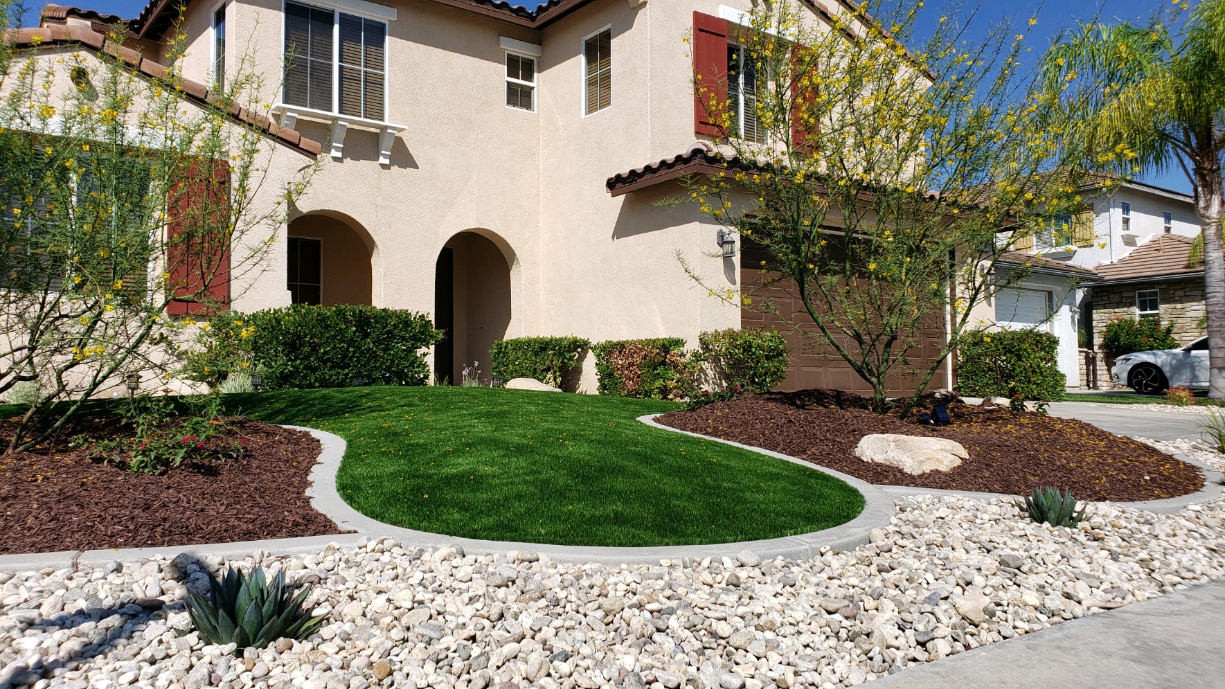 As you can see from the pictures, adding the right type and colored rock can really change the aesthetic of a yard. Knowing the rocks that look the best with artificial turf can be really helpful when designing your yard. To get a free estimate from ProGreen SoCal, contact us today at 877-405-5296.